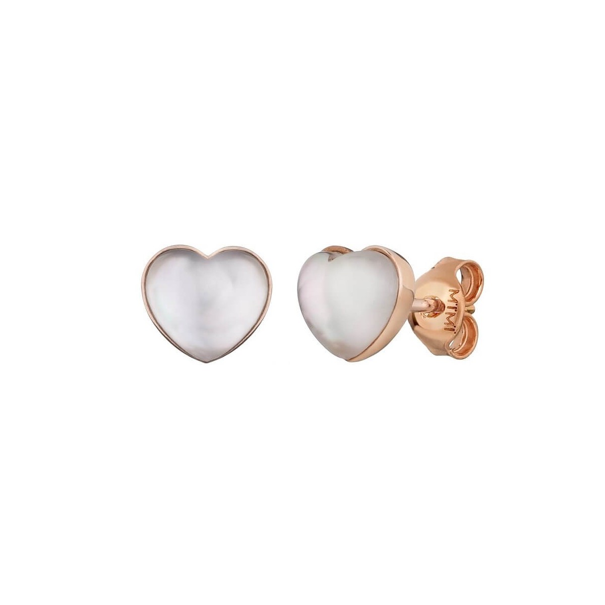 Mimì women's stud earrings from the Zabette collection made of 9 carat rose gold and a small heart with mother of pearl and rock crystal that gives an elegant almost transparent color to the stone. Butterfly closure