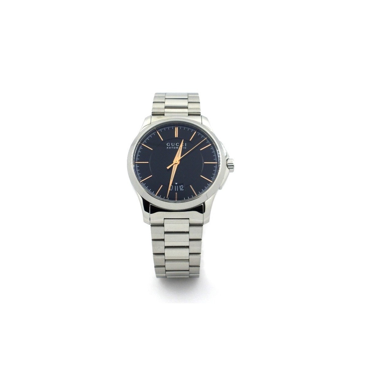 G-Timeless timepiece self-winding mechanical man with steel case and bracelet is equipped with black diamond dial with Luminescent gold hands and blaccate; scratch-resistant Sapphire Crystal and closing the buckle bracelet déployantela.