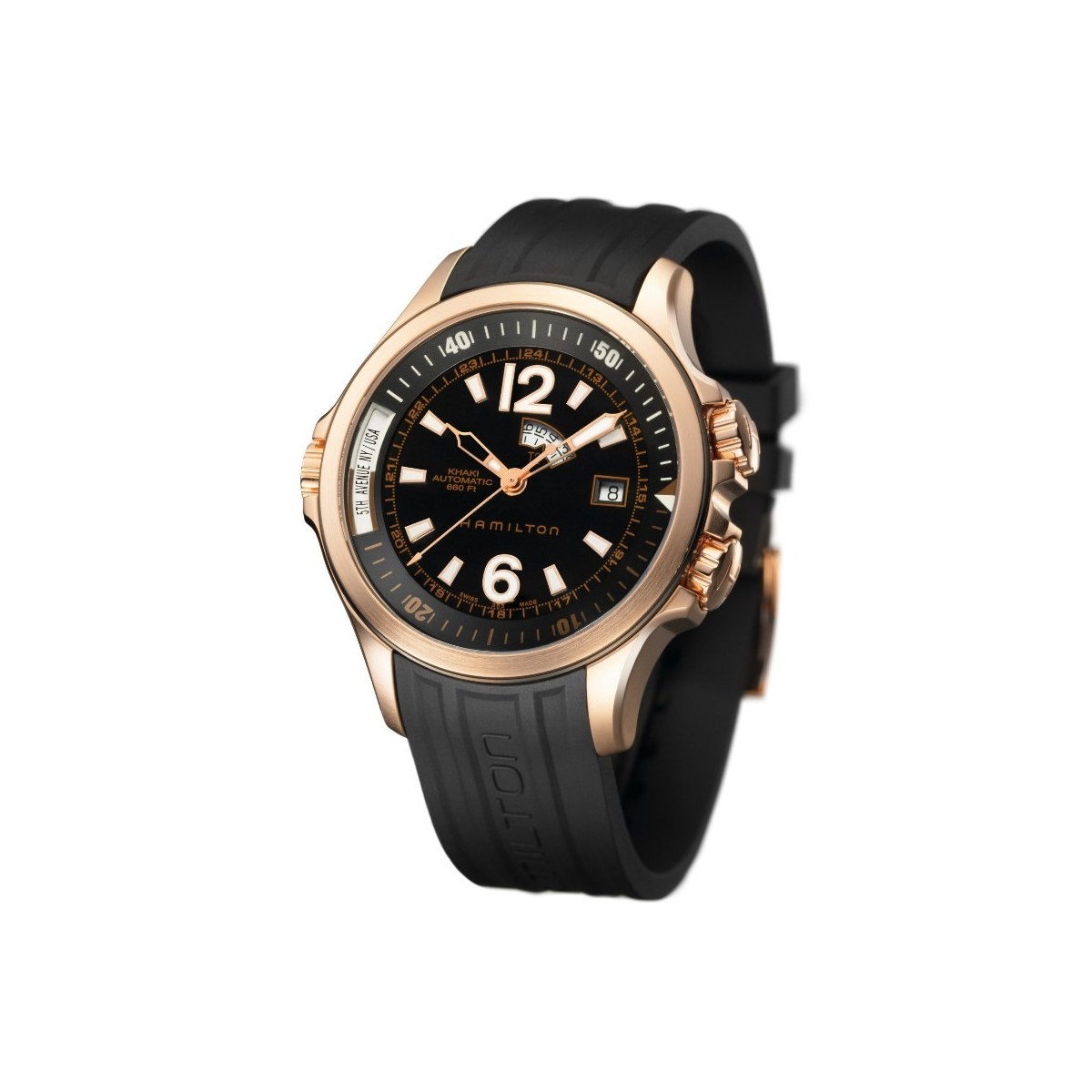 Khaki Navy GMT Watch Gold Plated Black Rubber Strap-cod: H77545735