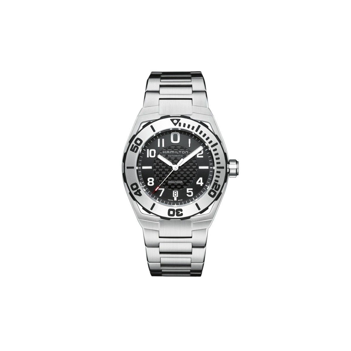 Ultra modern masterpieces inspired by marina inherit their shape from the iconic model Hamilton Piping Rock created in 1928. This intriguing look clock knows exactly how to reassert its strengths. Water-resistant up to 30 bar (300 m), the screw-down Crown, the rubber strap and rubber notes that consensus resulting from steel bezel, creating an intriguing three-dimensional effect.