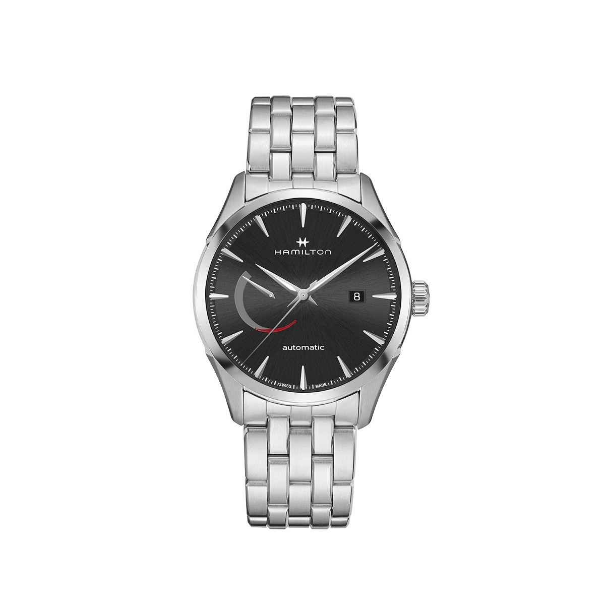 JazzMaster watch, Automatic movement with Power Reserve indicator, 42mm steel case, black dial with date display and steel bracelet