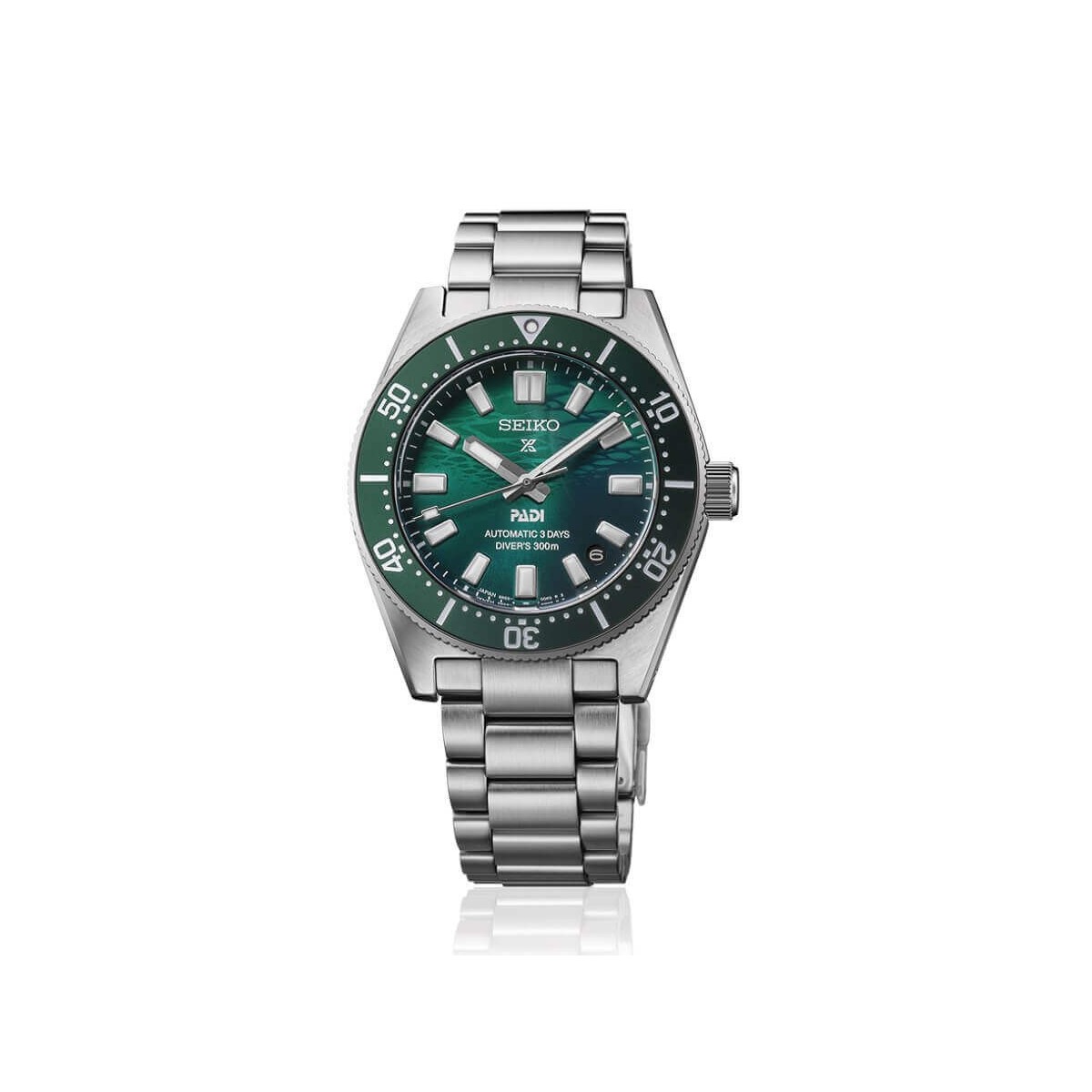 Prospex Diver Special Edition PADI 62MAS steel diving watch with automatic movement and emerald green dial.