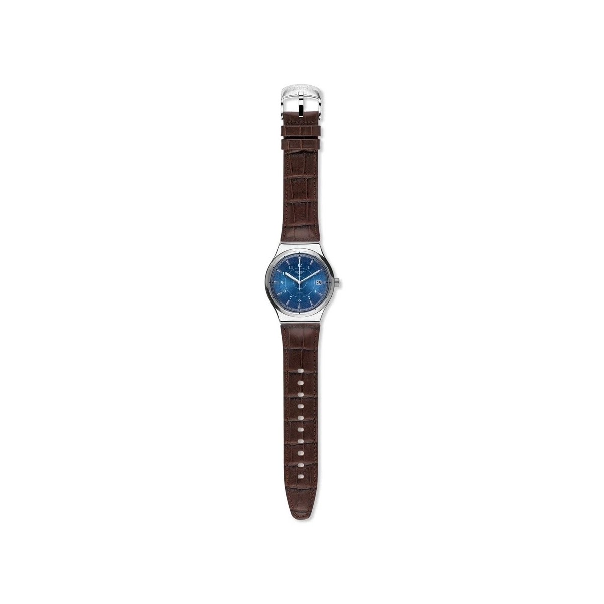 Watch with automatic movimetno line 51 hardened brown leather band Sistem Irony, blue dial, stainless steel case with transparent back and gears at sight