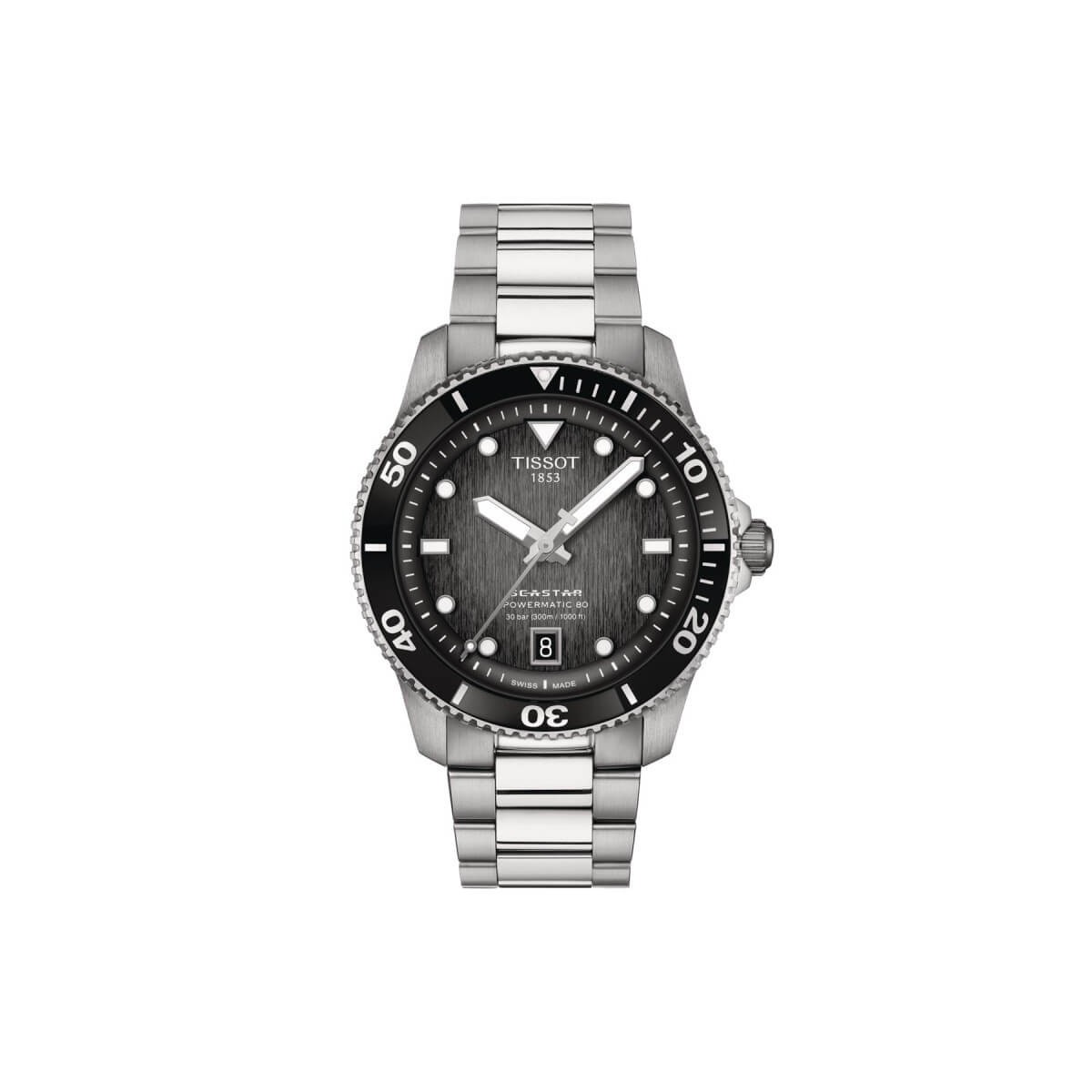 The Tissot Seastar 1000 will accompany you both in all your daily activities and in the most extreme ones including the most demanding dives, high performance up to a pressure of 30 bar (300 m / 1000 ft).