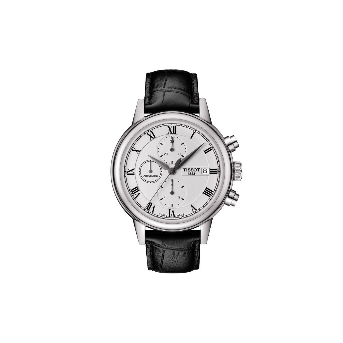 Tissot Men's Carson Gent Automatic Chronograph watch with stainless steel case and bracelet in black leather - cod:T0854271601300