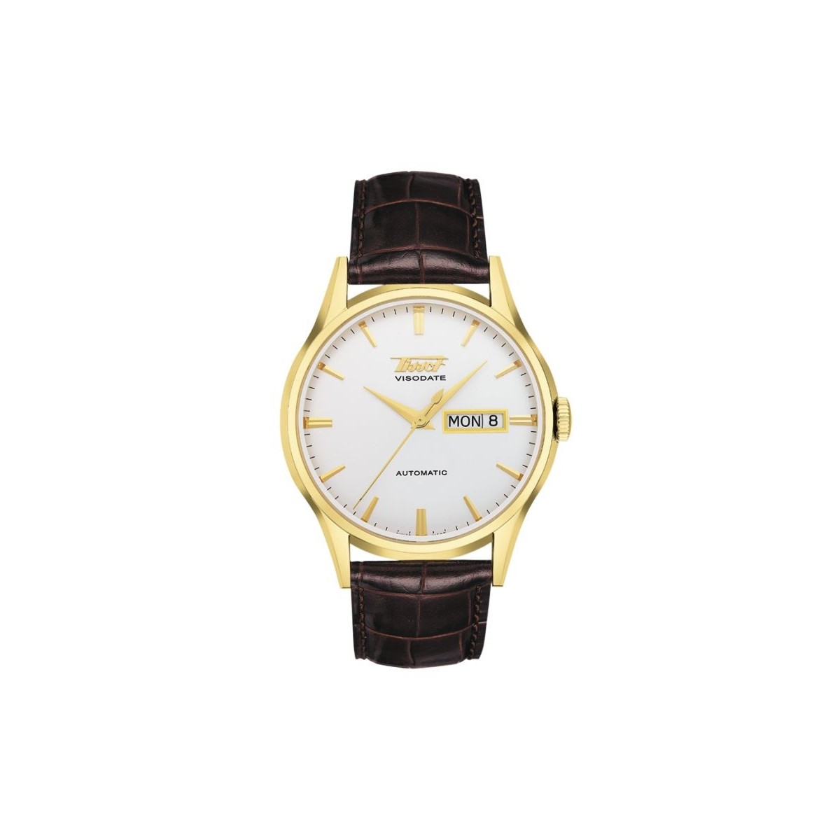 Tissot Men's Heritage Visodate Automatic Watch with steel gold PVD case and Leather Bracelet - T0194303603101