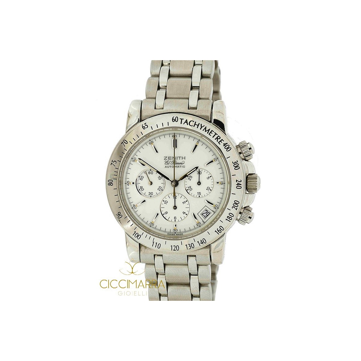 Self-winding conograph with the prestigious and unique El Primero manufacturing movement, characterized by the arrangement of the counters in the dial and the date at 4 o'clock.