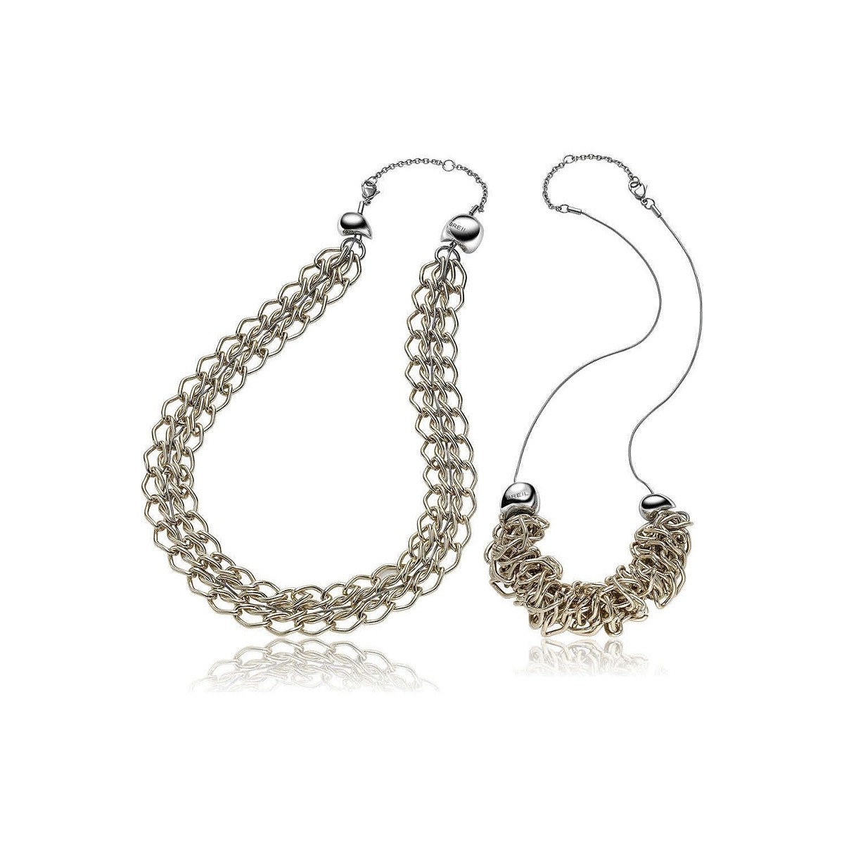 Champagne-colored steel choker necklace with pink veins, double chain soft link, shiny closure with end spheres and lengthening for adjustable length