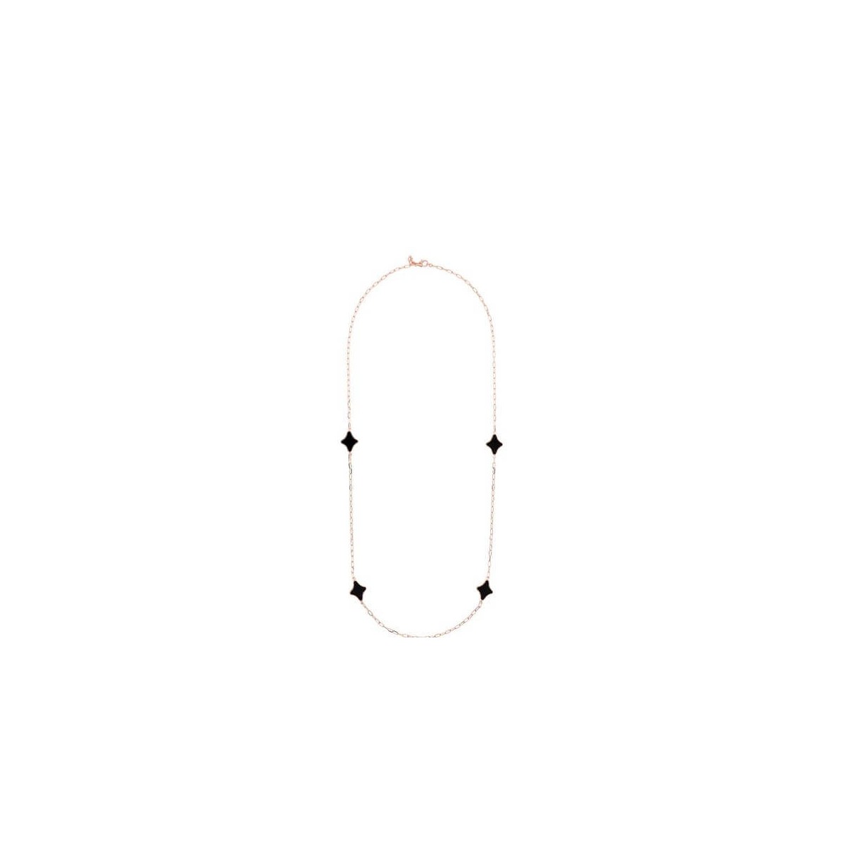 Necklace with forzatina chain and station etoiles in black onyx in 18 kt rose gold plated bronze alloy with lobster clasp.