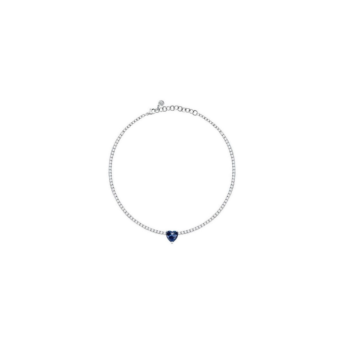 First Love collection tennis girogola necklace with white zircons and central blue heart