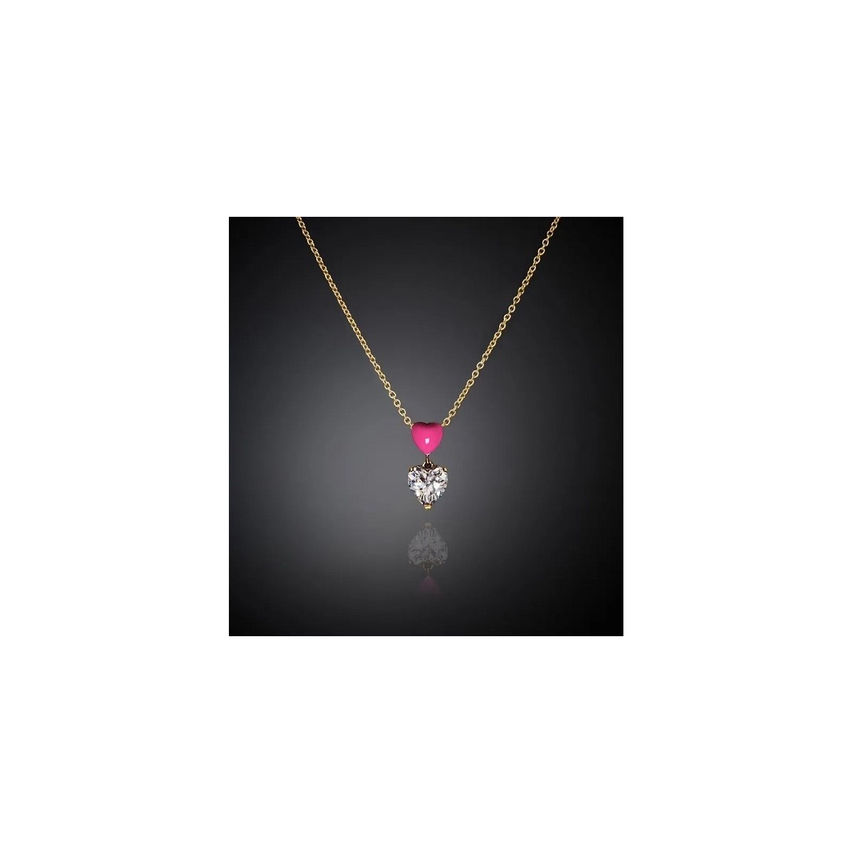 Yellow gold plated necklace with pendant from the Cuoricino Neon collection with pink enamel and white heart-cut zircon. Carabiner closure.