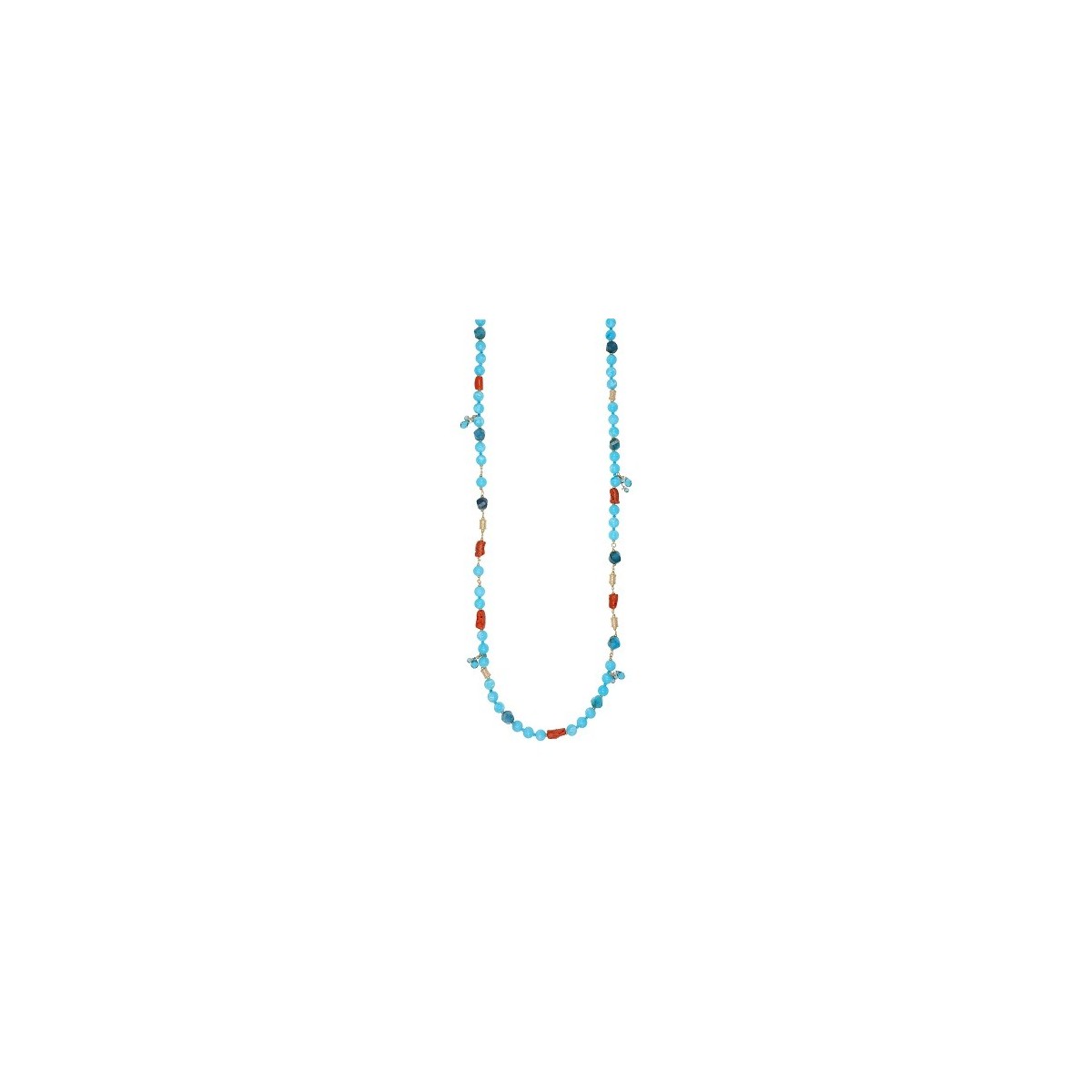 Women's Chanel Nivy long necklace, Solea line, made of 925 silver plated with yellow gold with coral, hemimorphite, apatite, zircons and drop zircons, 80 cm long. Spring lobster clasp closure.