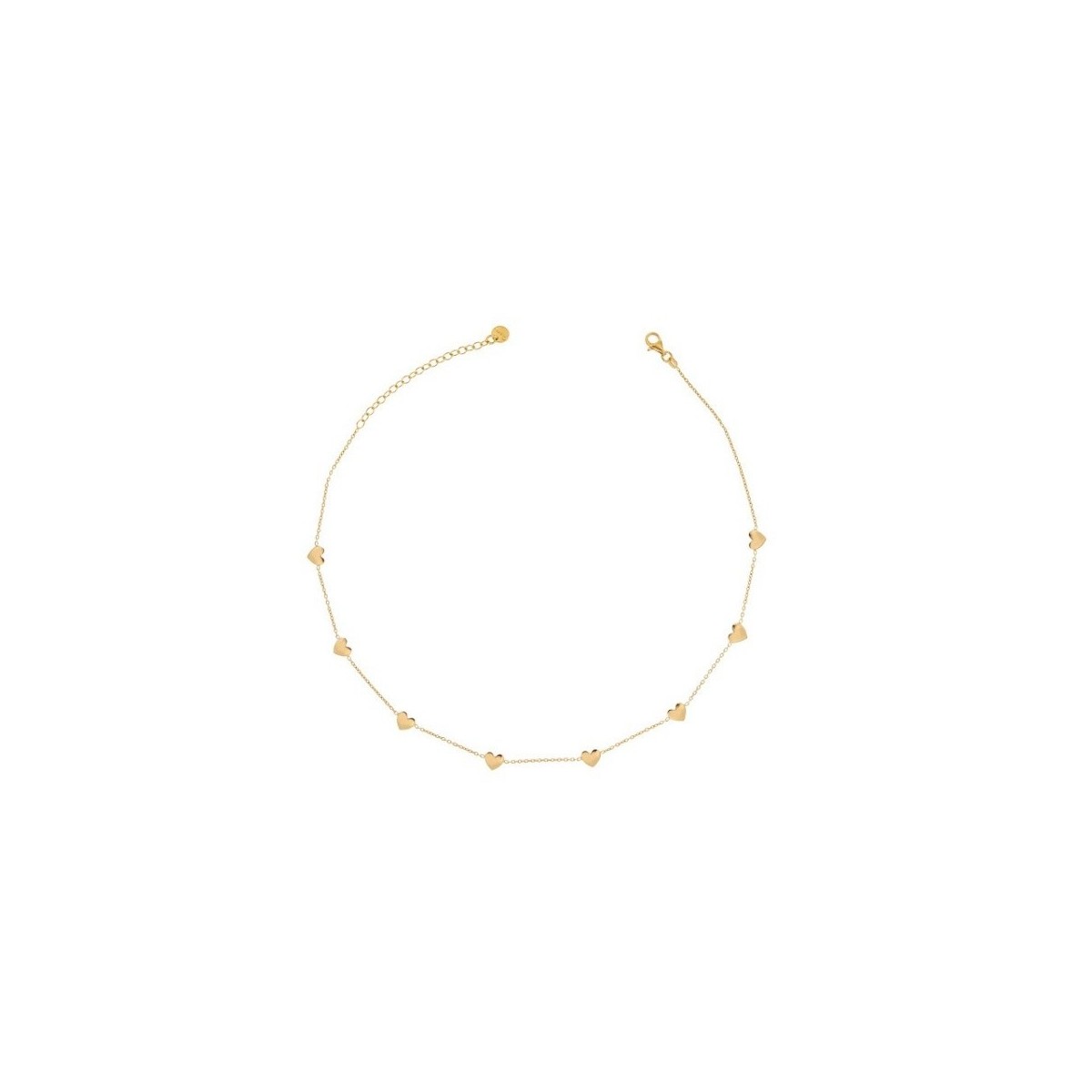 Yellow gold plated 925 silver choker, with hearts of equal size spaced symmetrically.