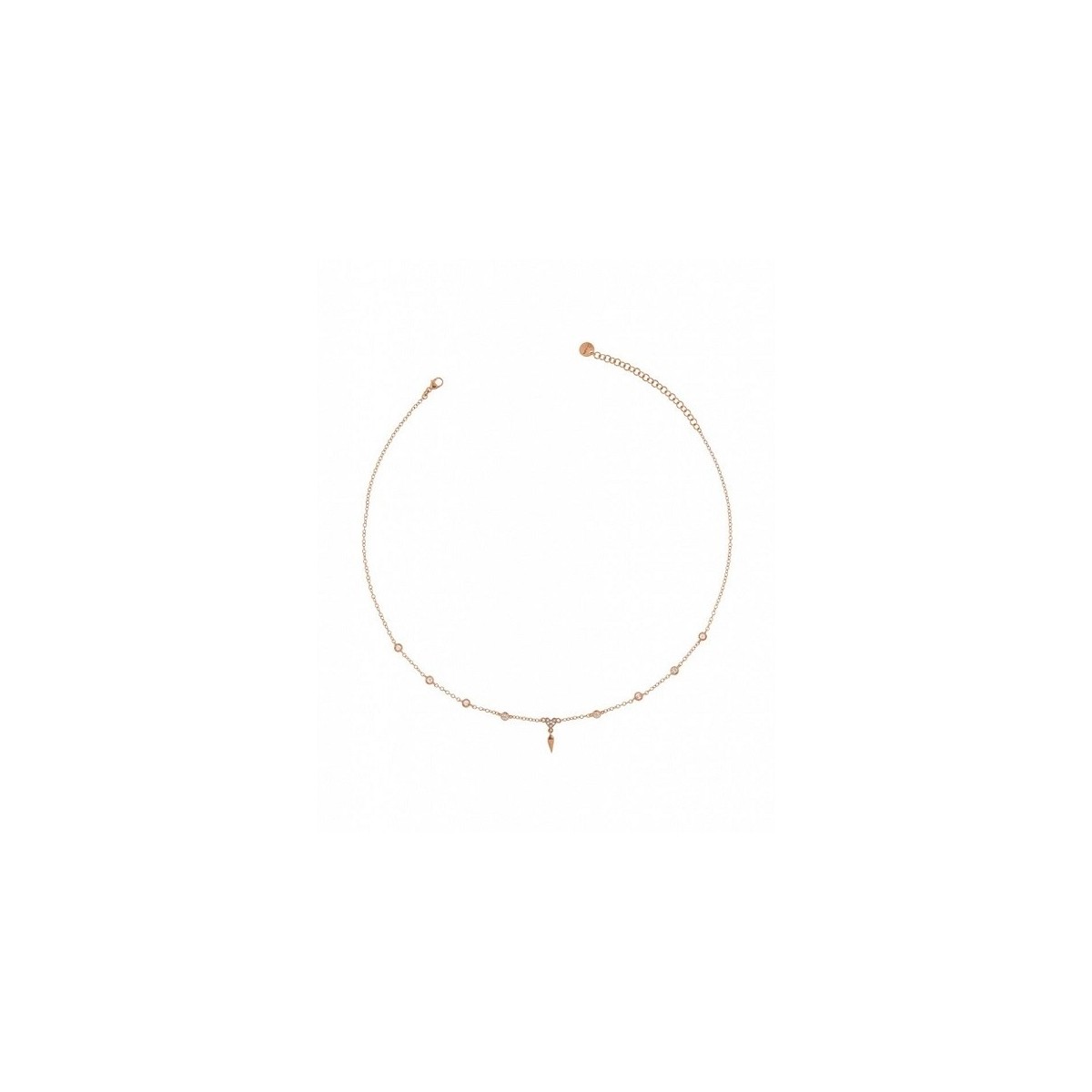 Yellow gold plated 925 silver necklace, with heart and spear and white zircons of equal size.