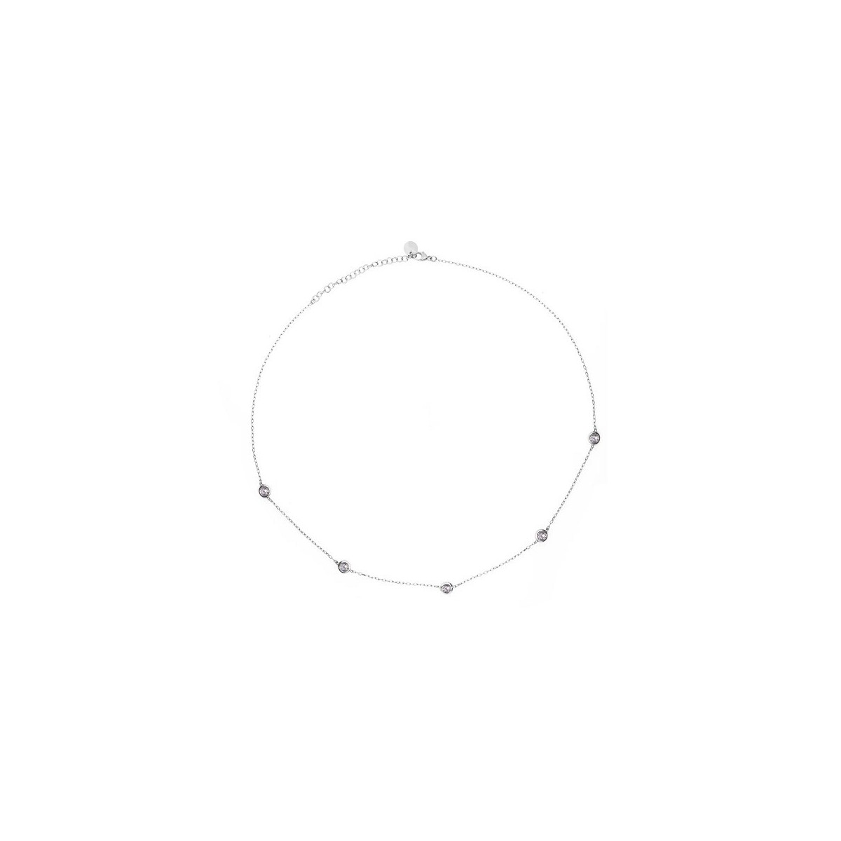 Necklace with thin chain in plated 925 silver, with white bezels. It represents tenacity, transparency, a feminine approach to daily challenges.