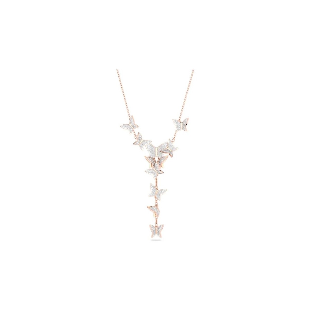 Swarovski women's necklace from the Lilia collection made of rose gold plated metal and Y-shaped pendant with butterflies embellished with white crystal pavè.
