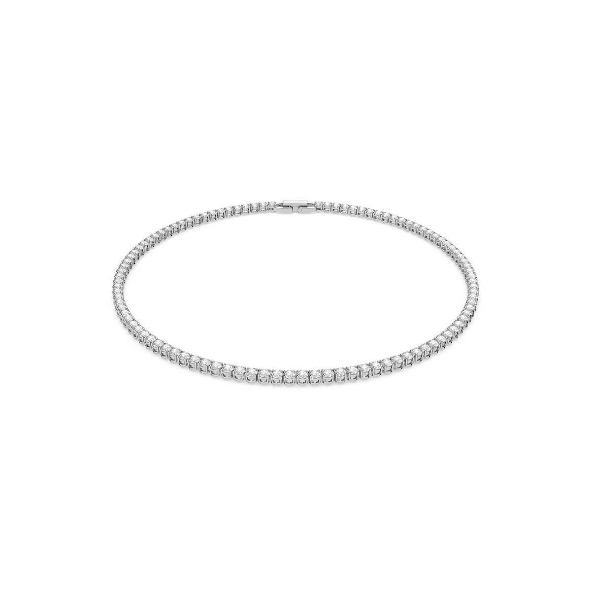 Elegant and timeless Swarovski tennis model necklace from the Deluxe collection made of rhodium-plated metal and round crystals mounted in claws to enhance their sparkle. Necklace that stands out for its luminosity, suitable for any occasion.