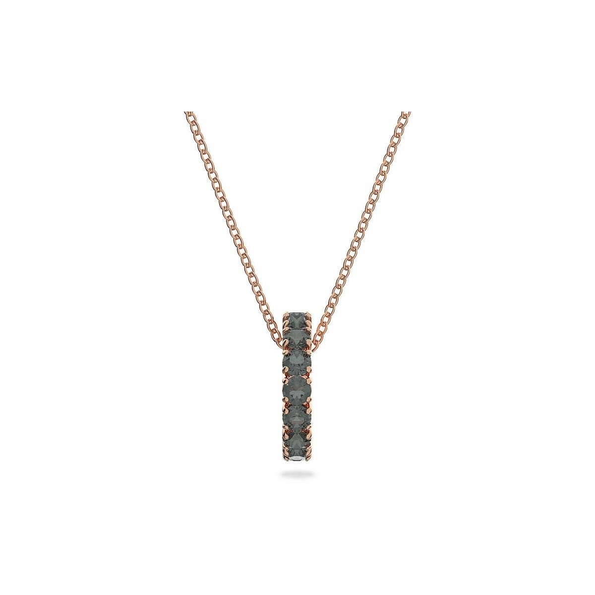 Swaroski women's necklace belonging to the Exalta collection. Made from a rose gold-plated chain, with an intertwined ring pendant embellished with a pavé of iridescent black crystals.