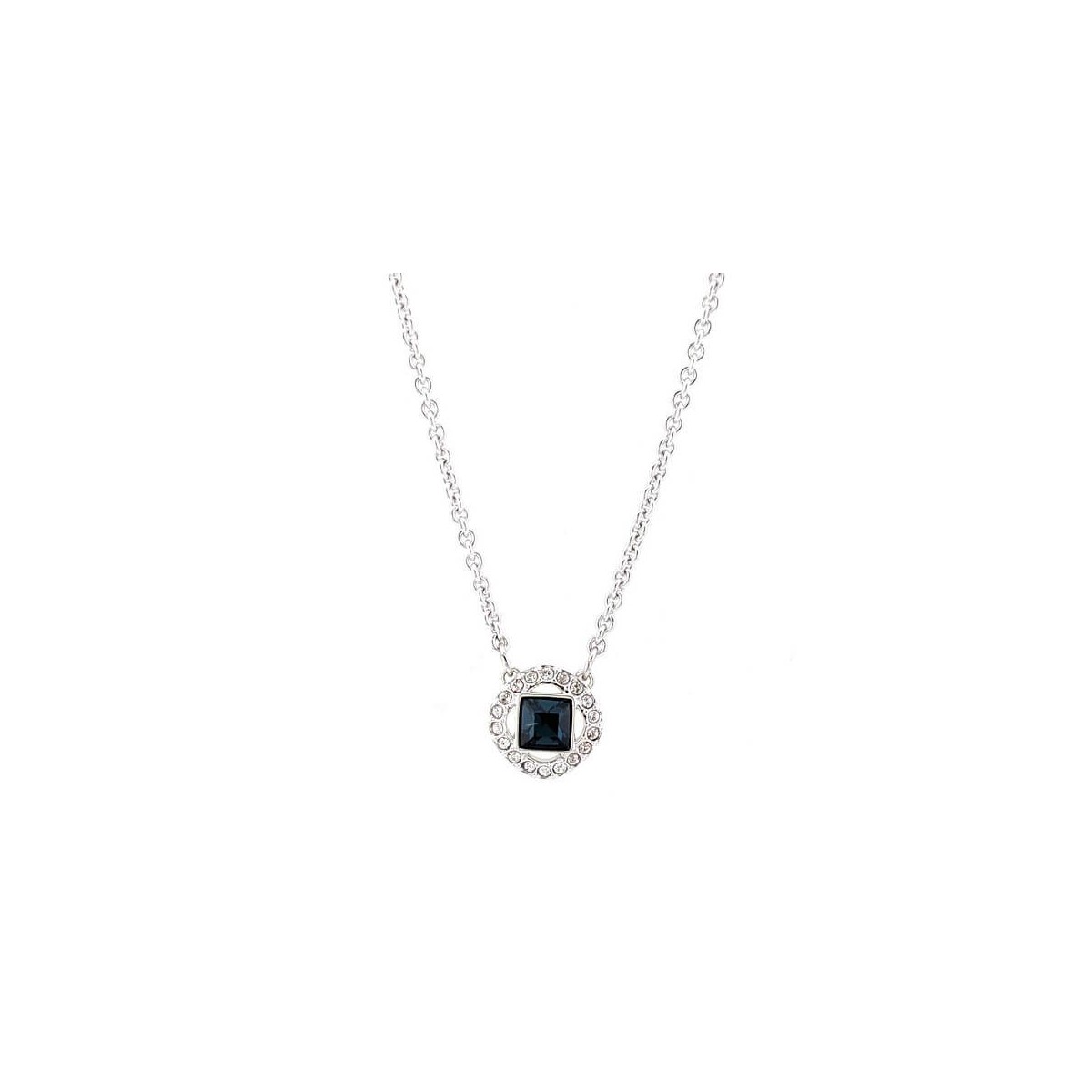 Swarovski women's necklace Angelic collection, made with a delicate and elegant rhodium plating with thin link chain and cold blue round crystal pendant suspended inside a chain with crystal pavé. Adjustable closure.