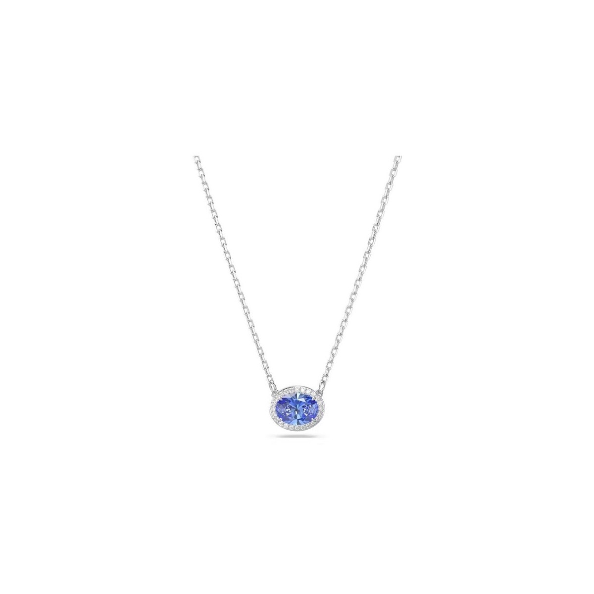 Swarovski women's necklace, from the Constella collection, made with rhodium plating, features a central oval blue Swarovski Zirconia, framed by a pavé of round Cry crystals.