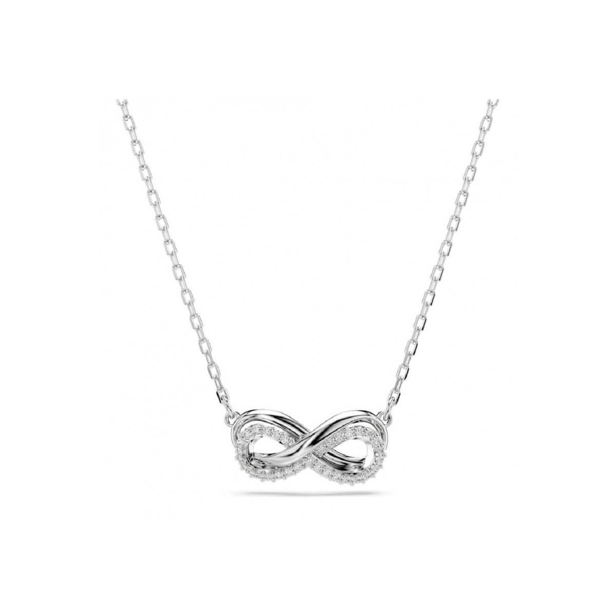 Swarovski women's gyro necklace, from the Hyperbola collection, made with rhodium plated chain. The jewel features a thin and elegant chain with an infinity symbol pendant embellished with a pavé of Crystal Clear.