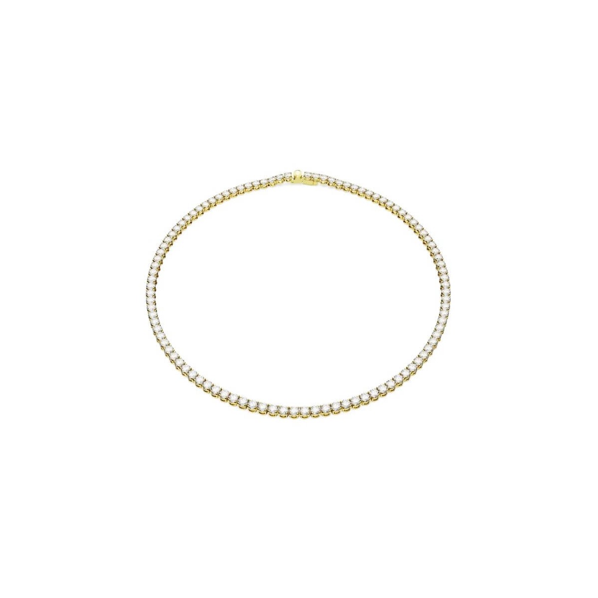 Elegant and timeless Swarovski tennis model necklace from the Matrix collection made of yellow gold plated metal with a row of round white crystals mounted in prongs to enhance the sparkle.