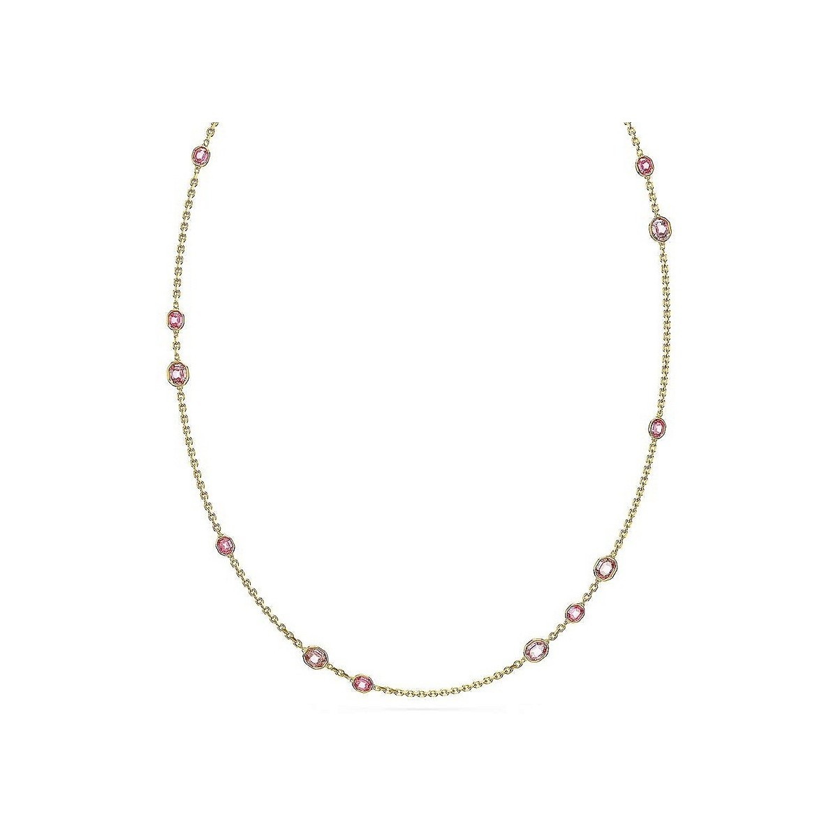 Swarovski women's necklace, Chanel model, from the Imber collection, made with an elegant yellow gold-plated metal chain and embellished with octagonal-cut pink crystals set on a rounded frame. Adjustable lobster clasp closure with single Swarovski Zirconia.