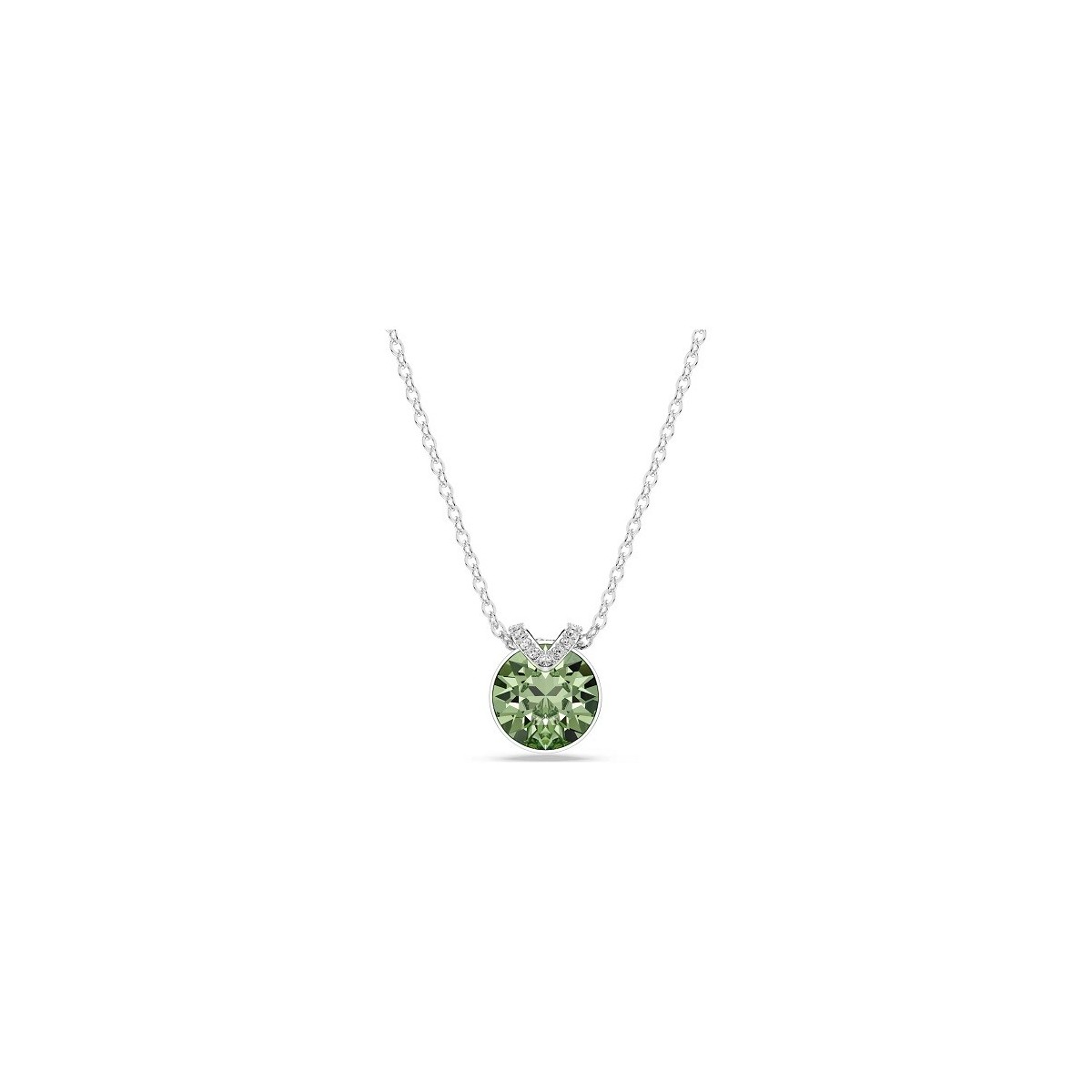 Pendant necklace, from the Bella V collection, for women Swarovski, enhance the interaction between geometry and light. The necklace is made with rhodium plating, the pendant features a central green crystal.