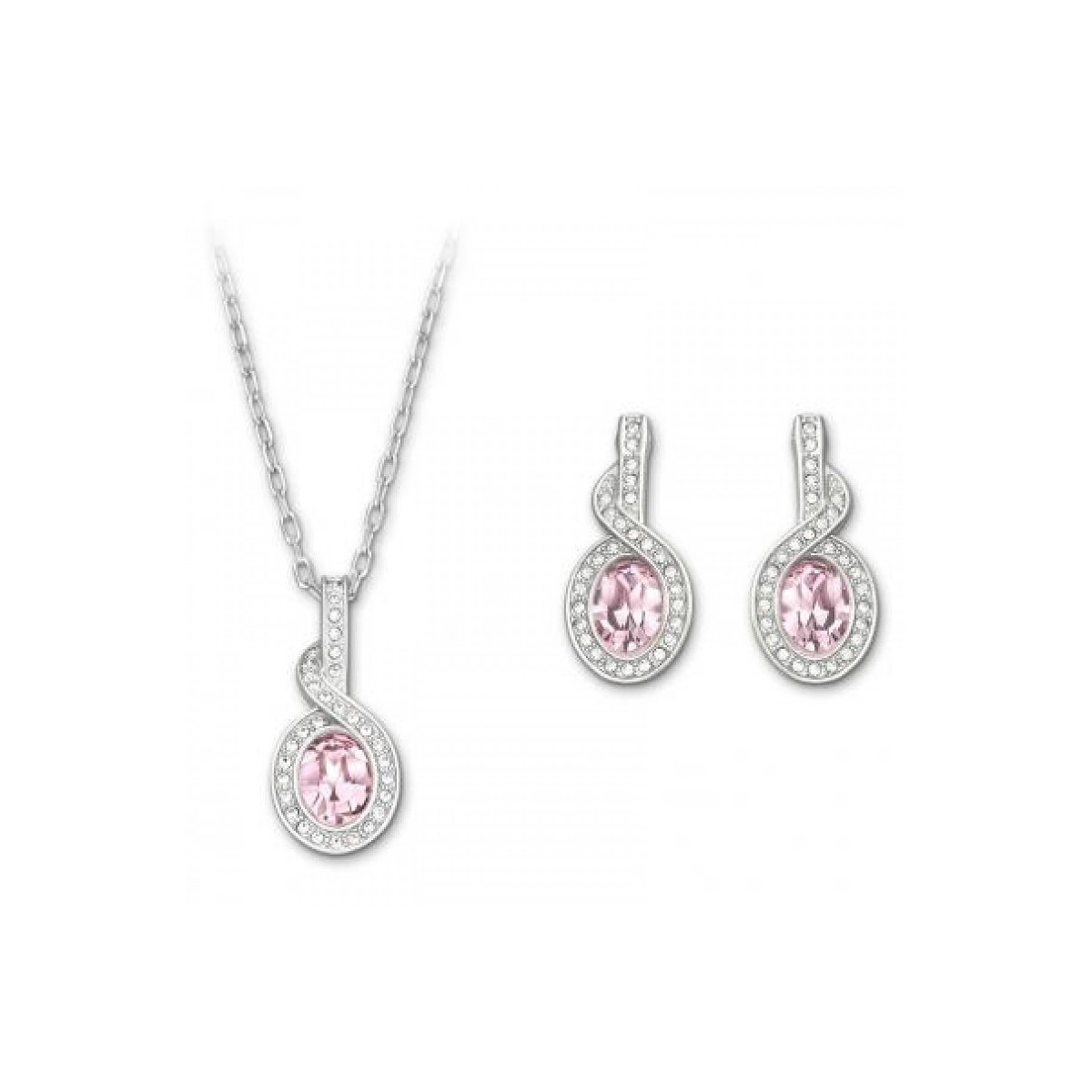 Ideal to accompany your days, here's a set that includes earrings and pendant with a chain. On each jewel the great Vintage Rose crystal dish is enhanced by gently in Clear Crystal pavé profile. A creation of great femininity and a perfect gift idea for any occasion.