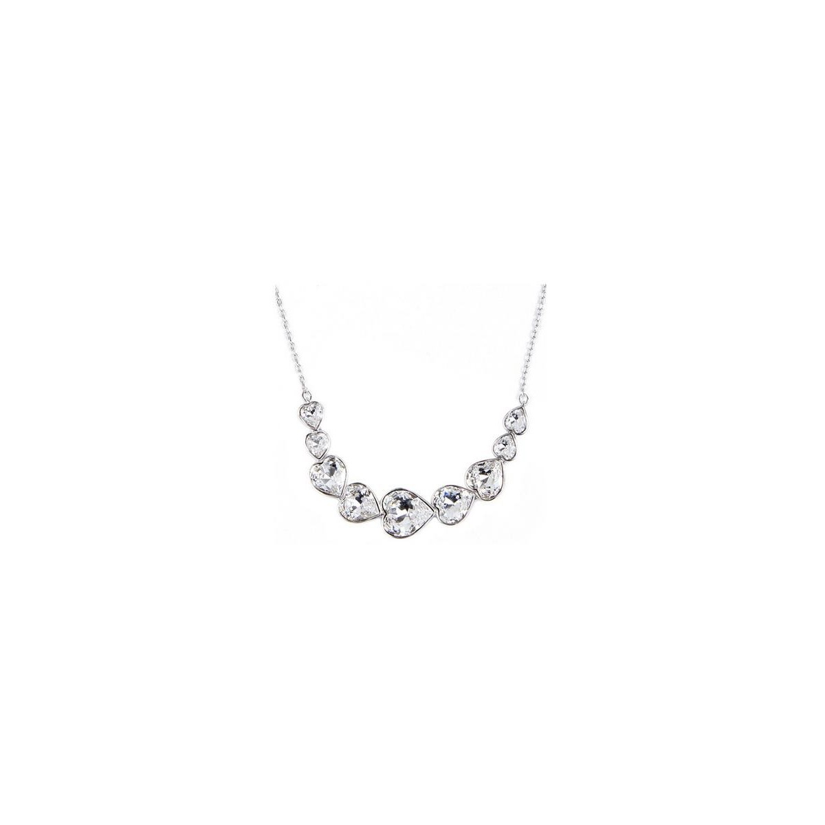 Crystalline elegance! The opulence of this rhodium-plated necklace reiterates a timeless classic, proposing a sequence of hearts Clear Crystal glass interpreted in Cardwell. The jewel with her luminous presence a set form evening dress an elegant set with rigid bracelet coordinated..