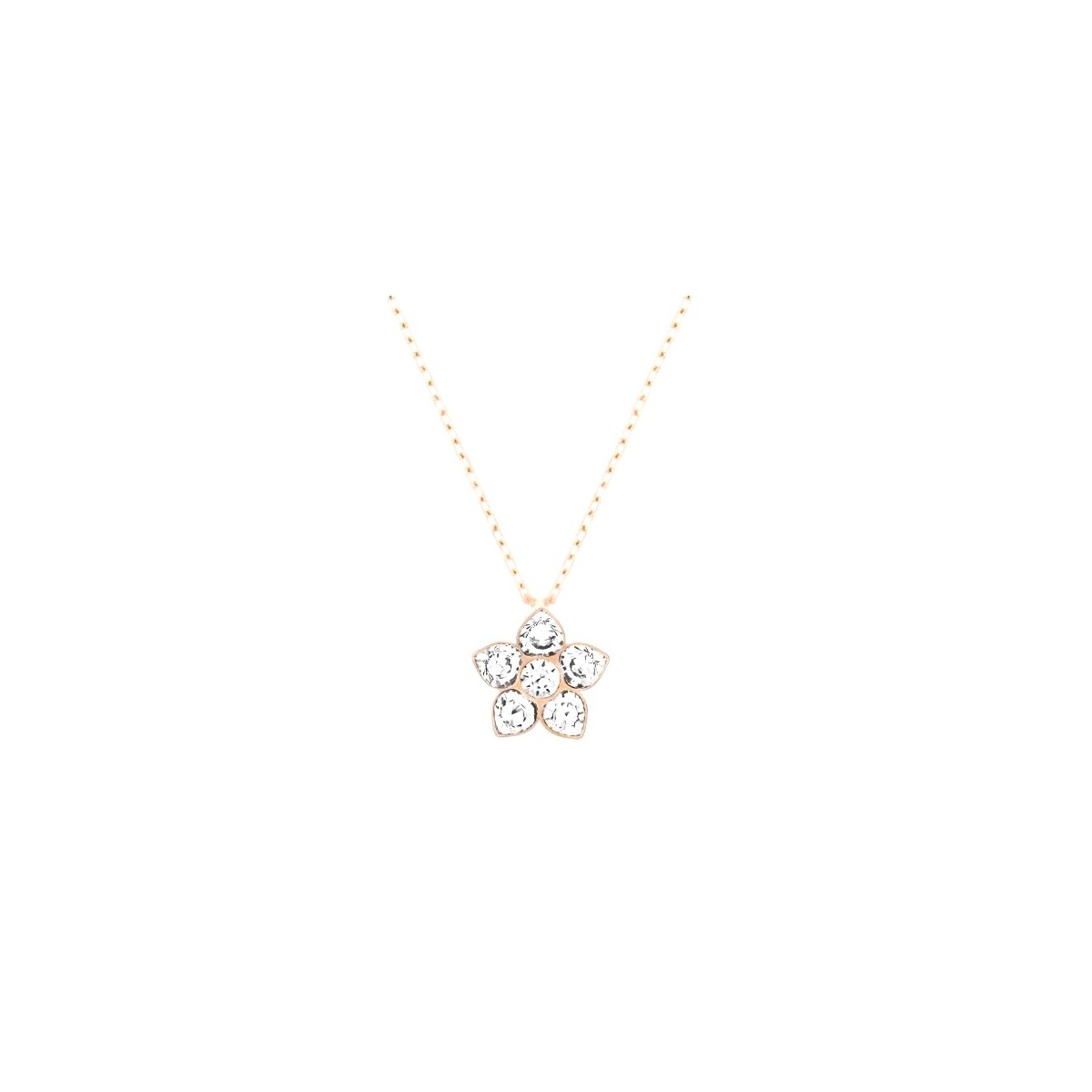 Inspired by nature, this rose gold-plated pendant features a delicate flower embellished with clear crystals. It is deal for adding a romantic touch or layering with other pendants. The pendant comes with a chain.