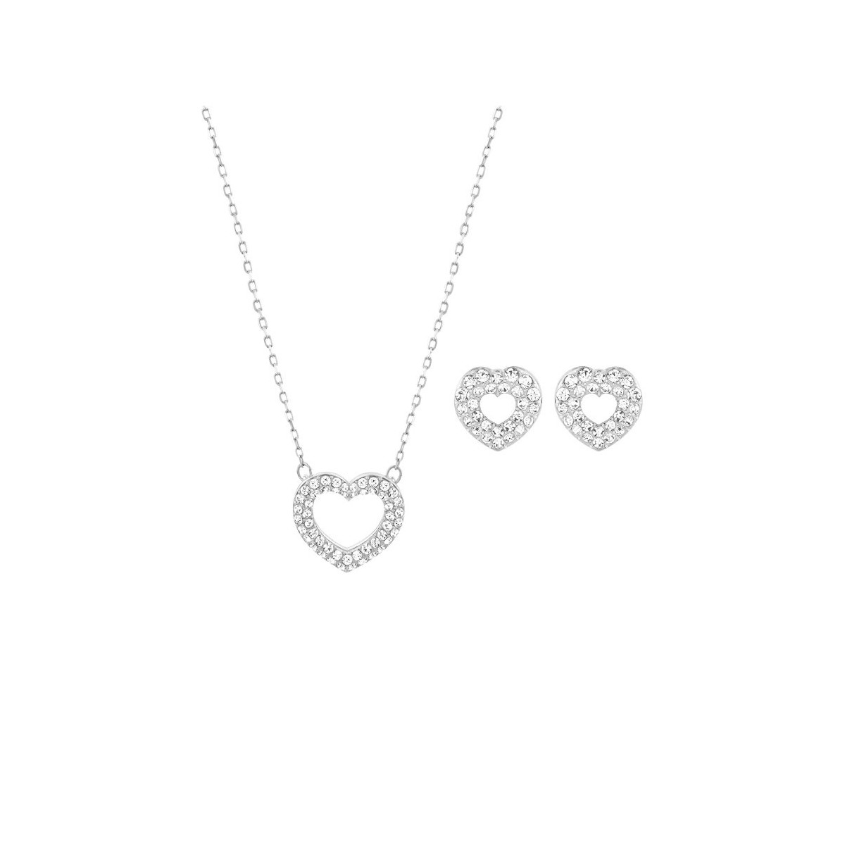 The heart motif interprets this parure ideal for Valentine's day, which includes a pendant attached to a chain and a pair of earrings to lobo. Beautifully made in Clear Crystal pavé, the rhodium plated can be easily to other Swarovski jewelry.
