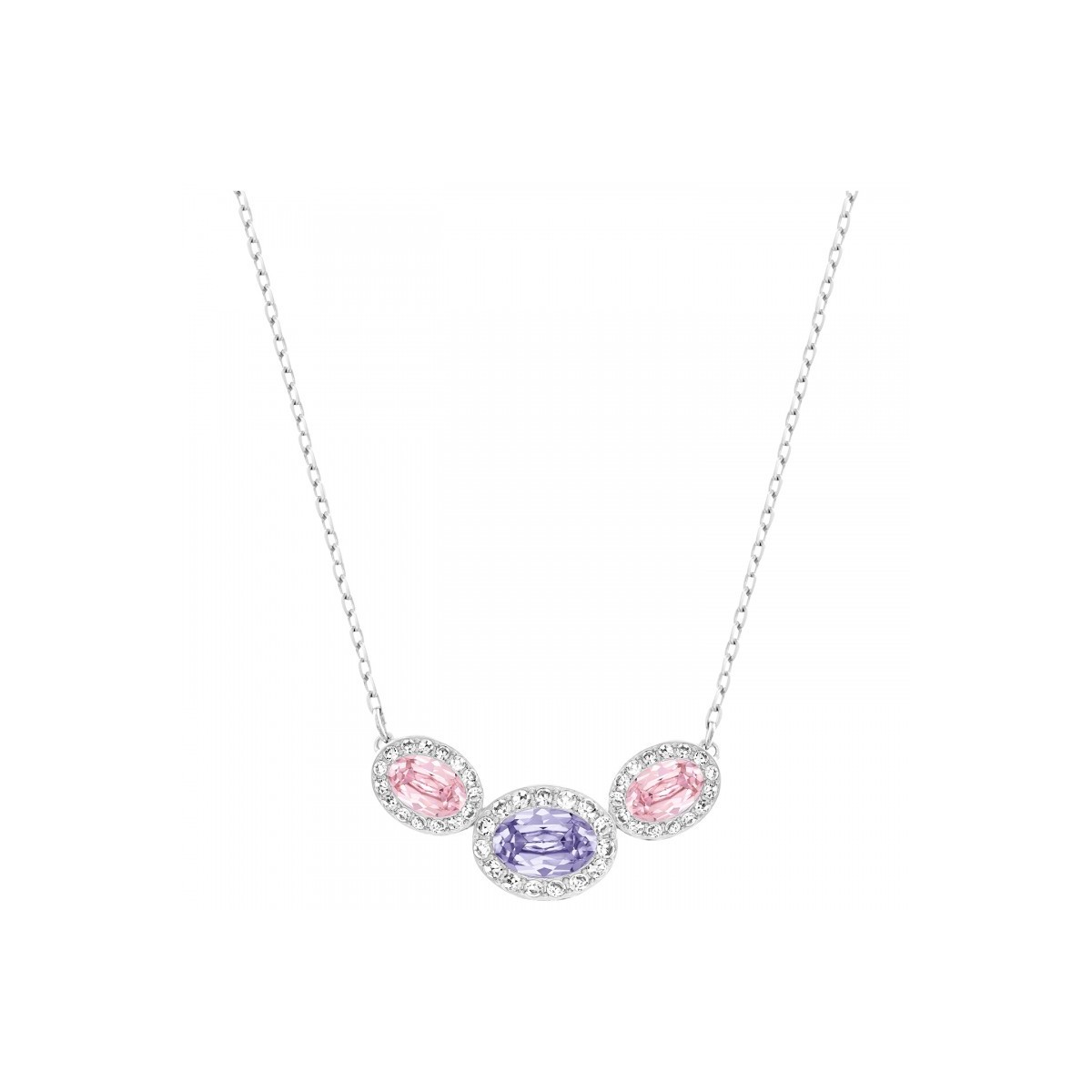 Inspired by the first blooms of spring, the neck can be easily attractive to other jewelry due to its delicate nuances and its discreet presence. Played in pastel shades of three oval-cut crystals, the Choker is proposed with a rhodium-plated chain.