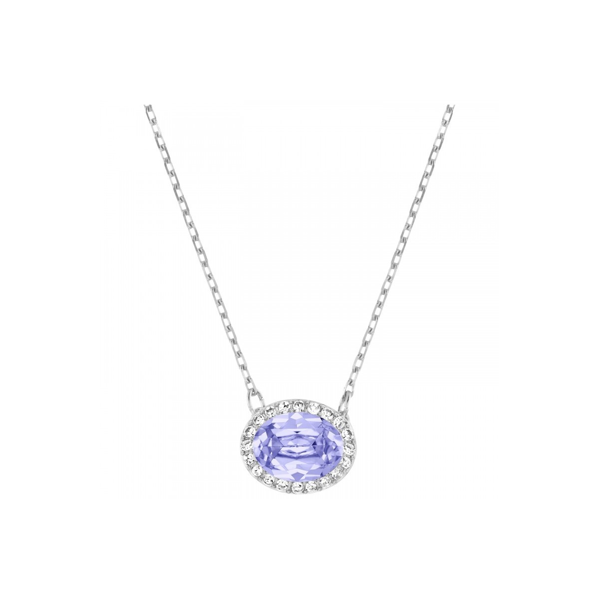 Swarovski Christie Oval Crystal Necklace with stone color lavender on a rhodium-plated chain