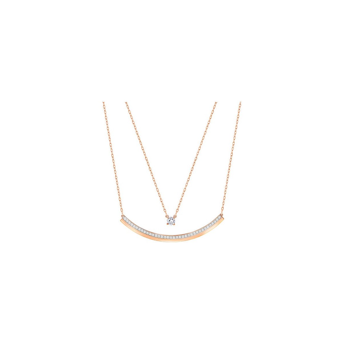 Interpreted the indispensable style superimposed on the season with this double-strand necklace, alternating Clear Crystal and gold-plated metal rose in a discreet, feminine jewelry, perfect to match with other Swarovski creations. The necklace measures 38 cm.