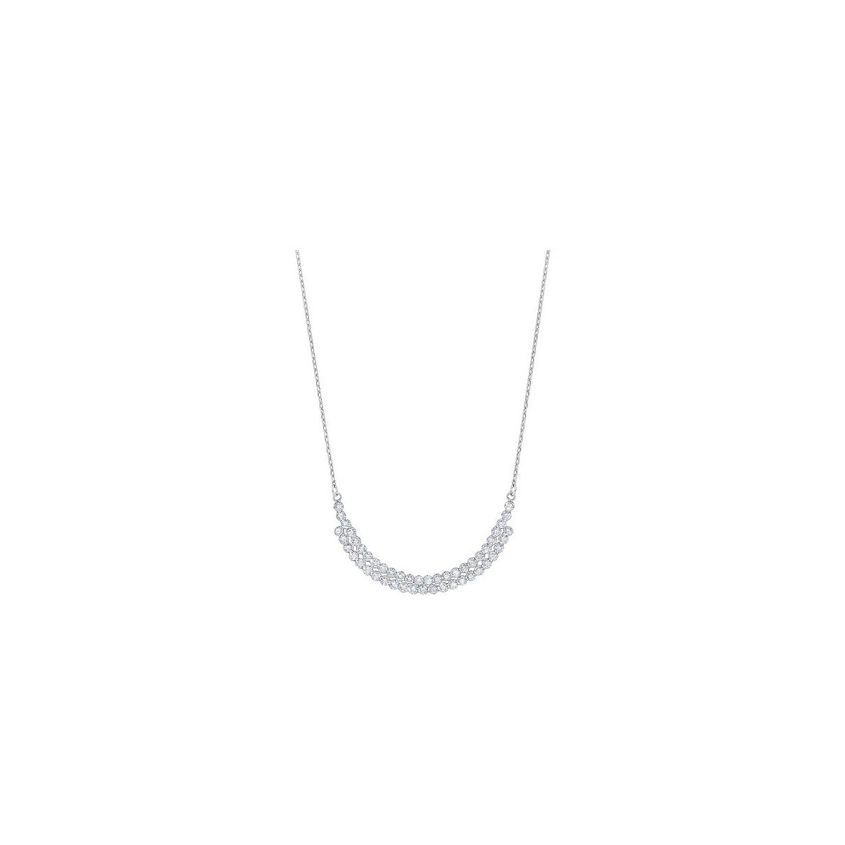 Minimal elegance to the rhodium-plated necklace that proposes a new version of cupchain. Add a pendant to trendy style along with kindred platings. The necklace measures 38 cm
