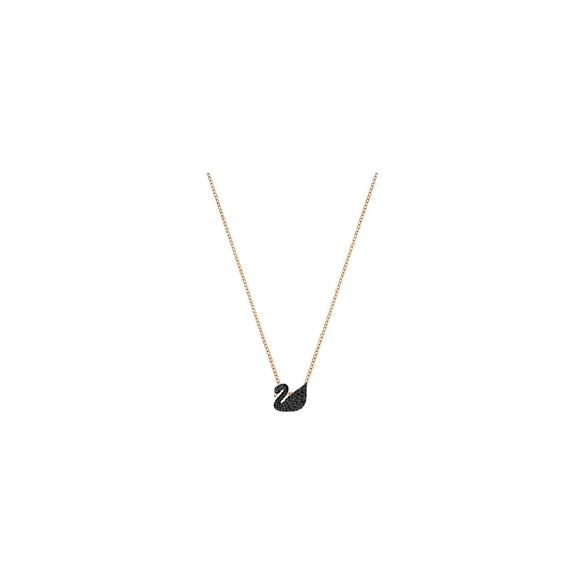 Rose necklace with pendante Swan shaped with black Swarovski crystals