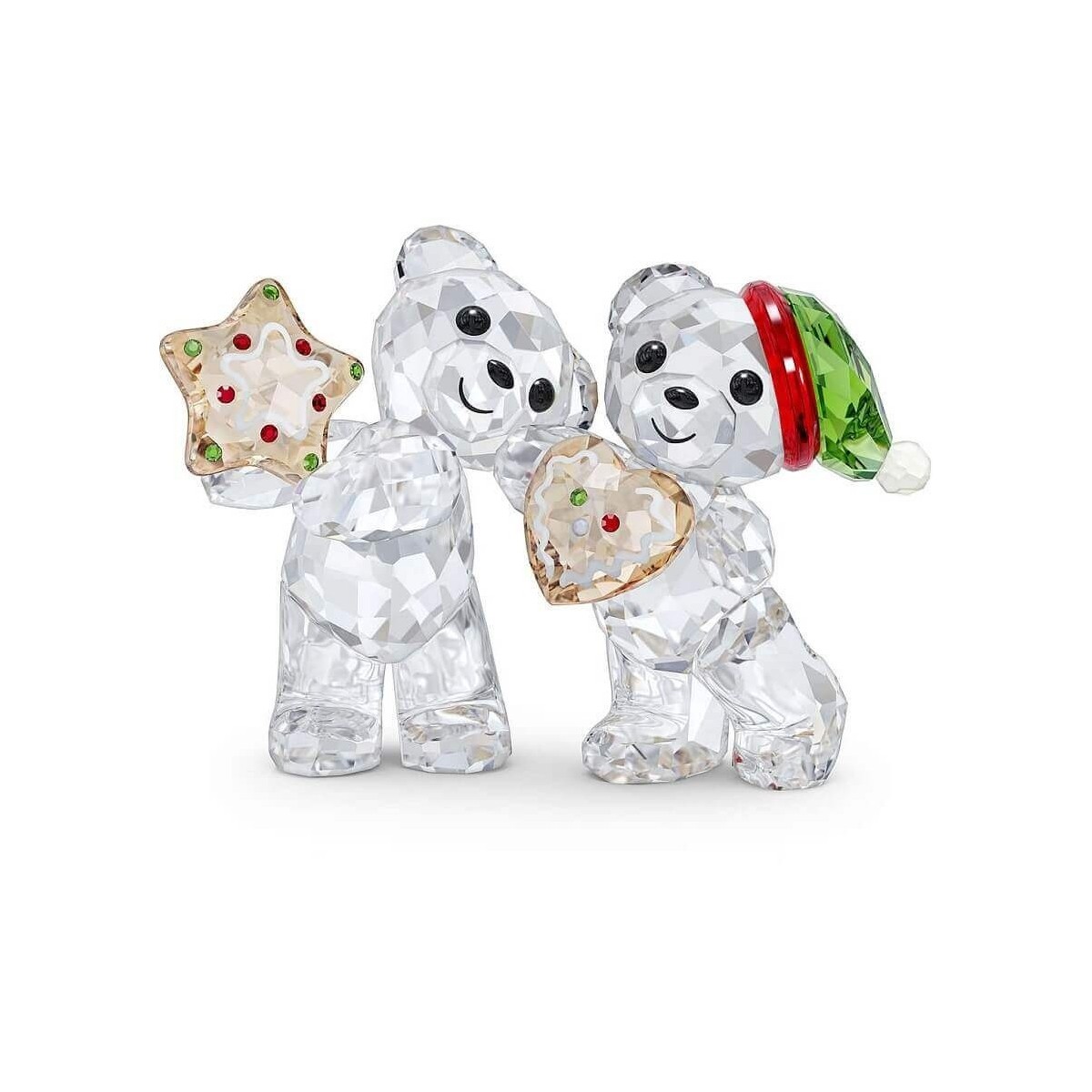 Christmas ornament, from the Kris bears line, features two cry crystal bears with colorful details such as cookies and hat, and 2022 engraving.