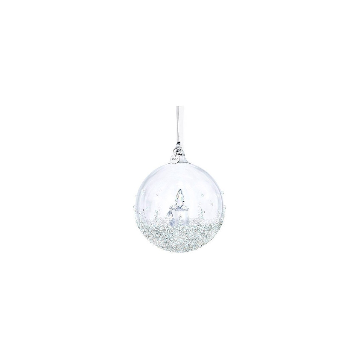 Discover the Christmas Ball, Yearly Edition 2017, which houses a full-length crystal candle. Available only in 2017, with a silver metallic nameplate featuring the year of issue, the blown glass ball is hand-decorated with the exclusive Swarovski Crystal Rocks technique, making it unique in every specimen. The decoration hangs from white satin ribbon: a perfect gift to celebrate birthdays, anniversaries or any other important event that will take place this year. Decorative object. It's not a toy. Not suitable for children under 15 years of age.