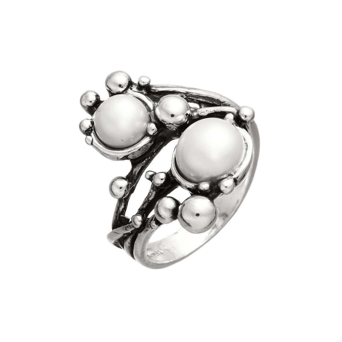 Women's ring from the Ad Astra collection made of 925 silver with a pearl set between two silver threads. Measure 14