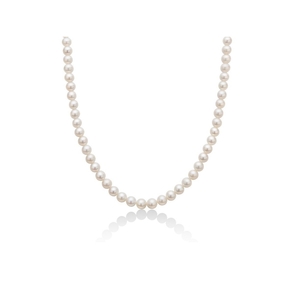 Miluna women's necklace from the Le Perle collection made in 18-karat white gold with white Orient pearls with a diameter of 5.5 - 6 mm and snap hook closure. The length of the necklace is 40cm.