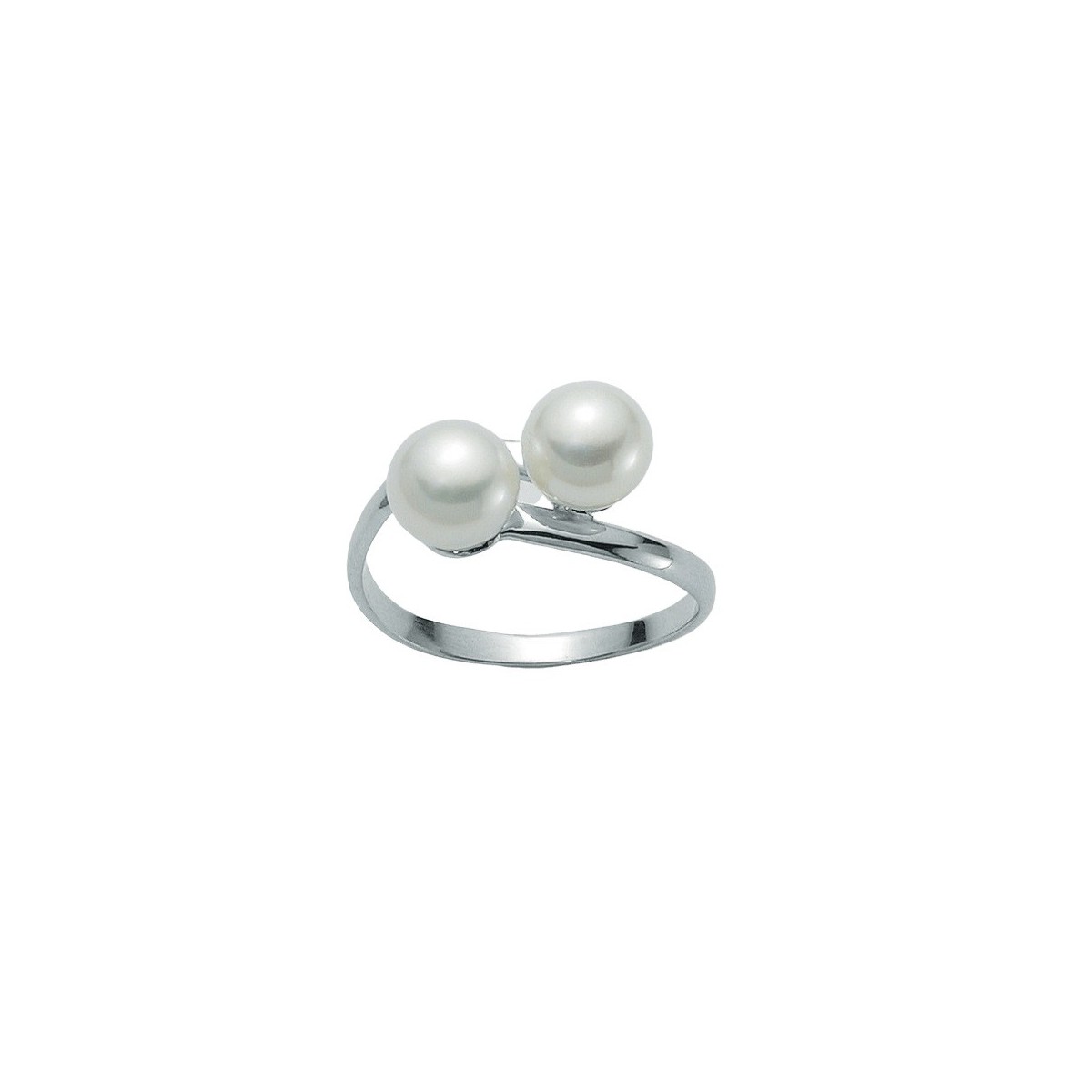 Women's ring, Le Perle line, made in 18kt white gold with two white freshwater pearls 6.5 - 7 mm. Size 13
