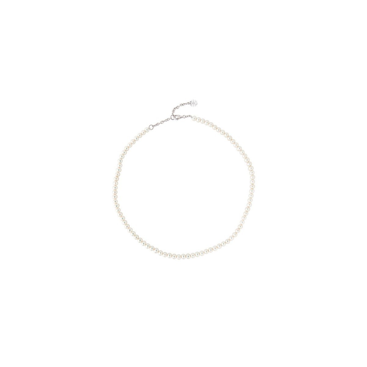 Women's necklace, Elastica line, made with white pearls 4 - 4.5 mm and clasp with silver symbol.
