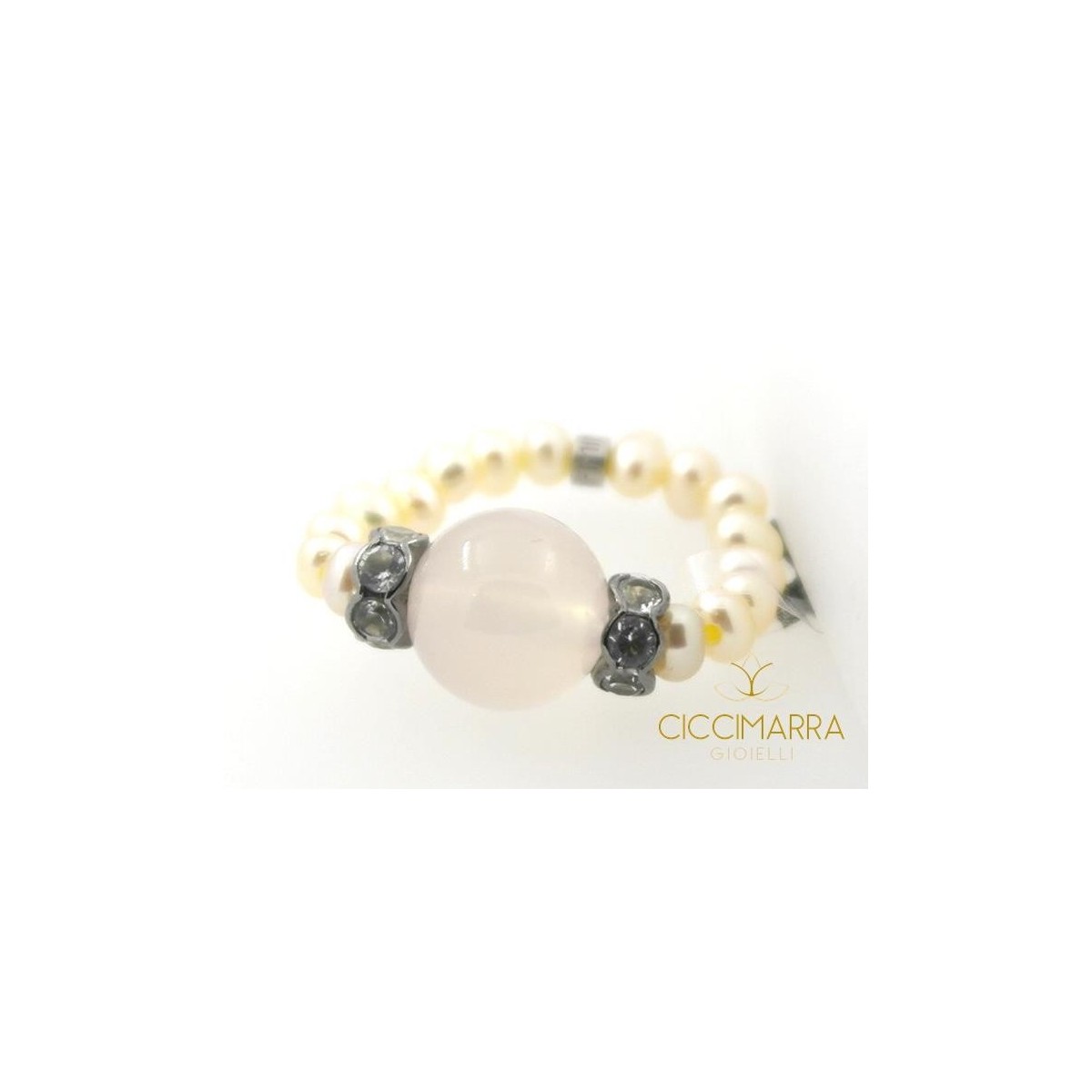 Mimi elastic pink pearls ring small sphere with silver and amethyst size 12,14,16
