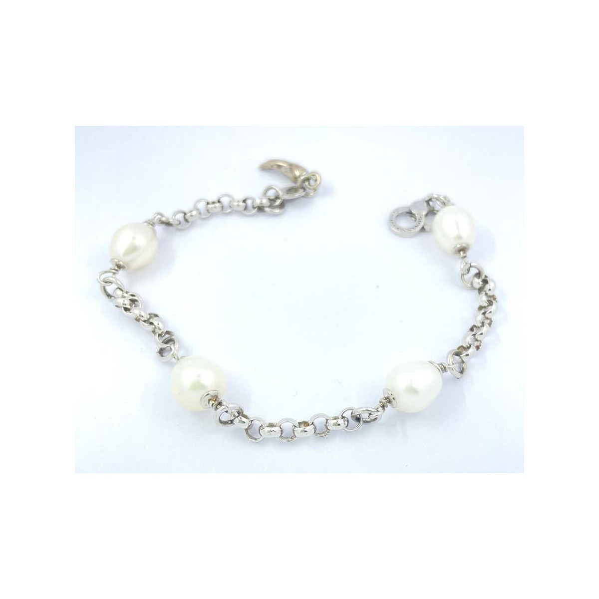 Features Raspini silver and pearl bracelet: