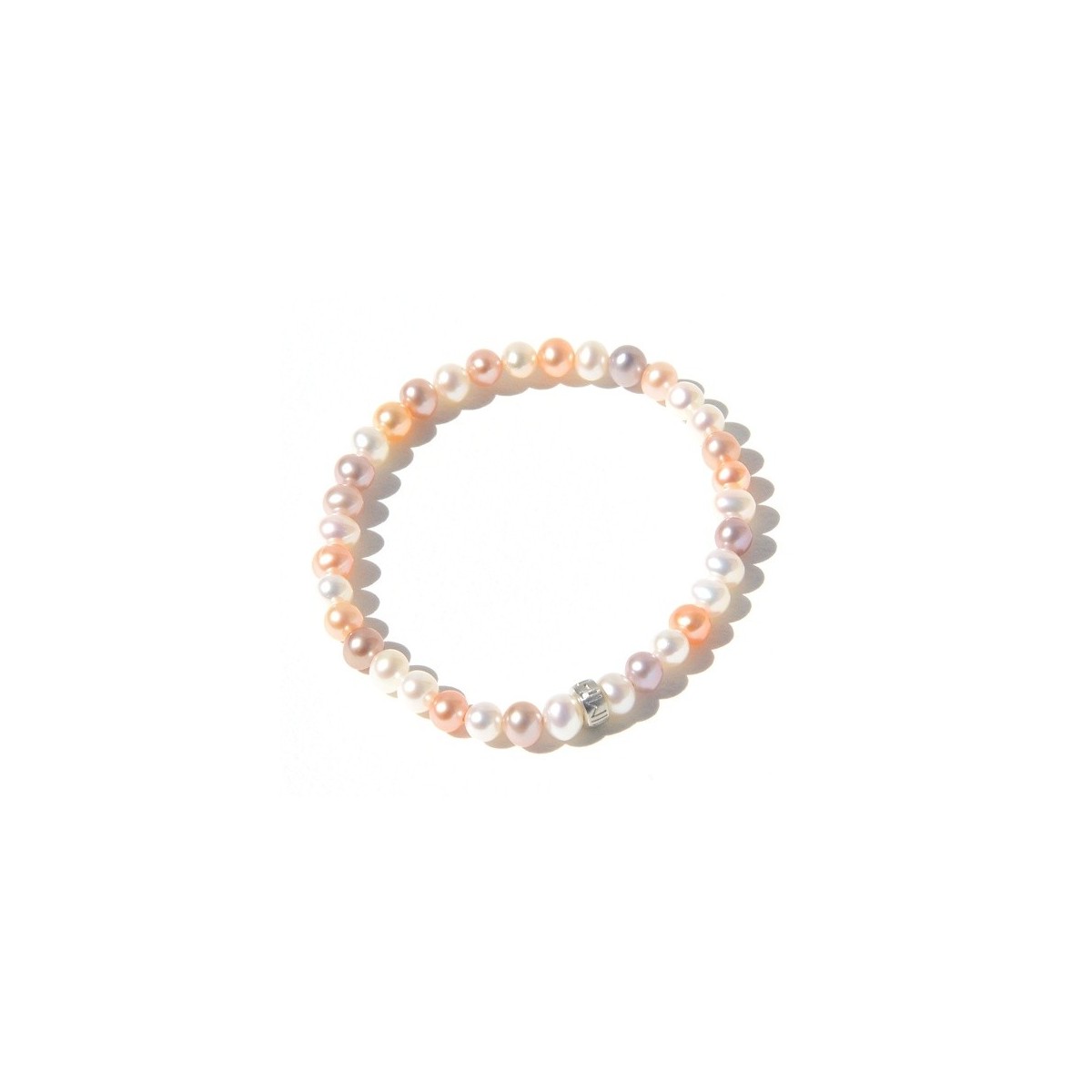 Elastic pearls bracelet with silver logo - B02304AR