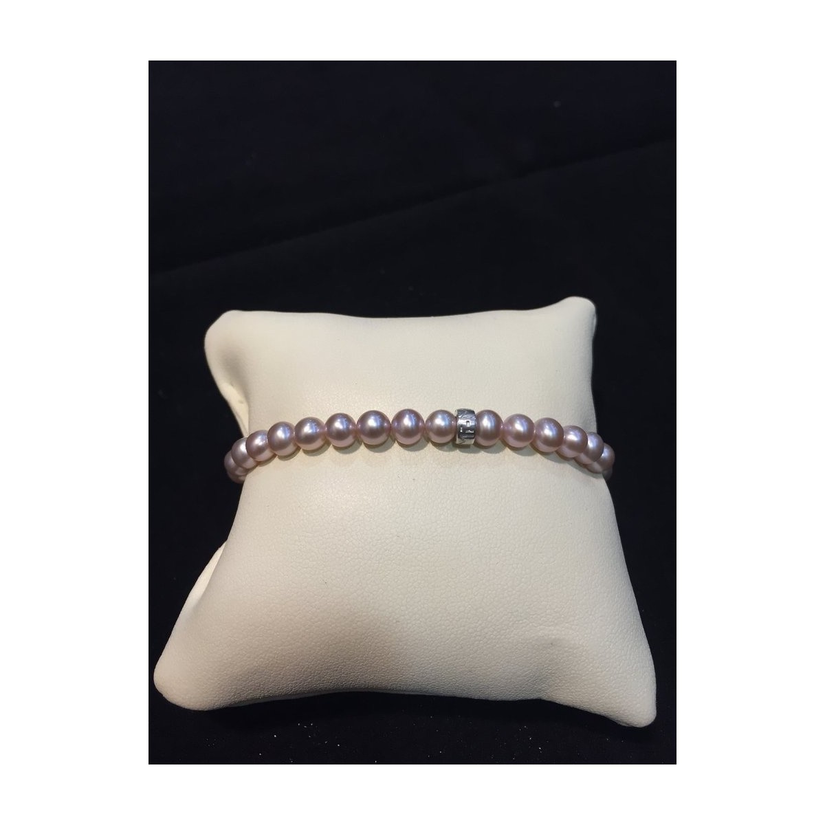 Mimi elastic pearl bracelet small sphere dark purple and silver logo ring - B02303ARV