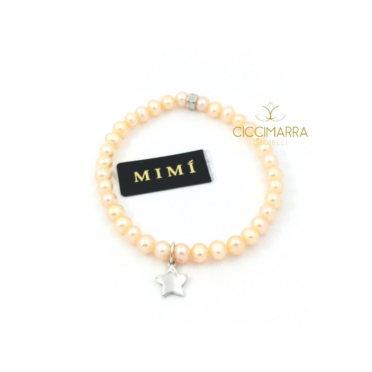 Elastic bracelet in cream pearls with star-shaped pendant and Mimi logo in 925 silver - B0M027A2