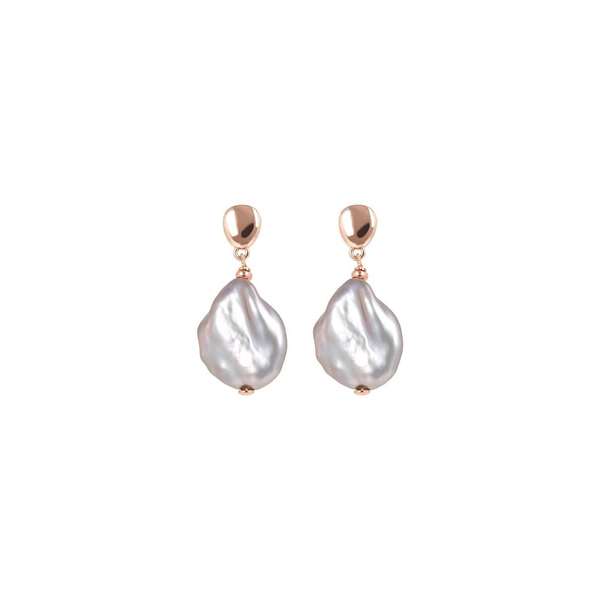 Bronzallure rosè pendant earrings with flat baroque gray pearl