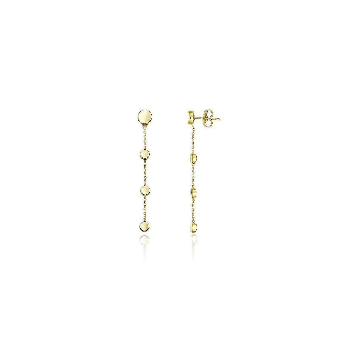 Armillas Glow chain pendant earrings with studs in 18kt yellow gold. Butterfly closure.